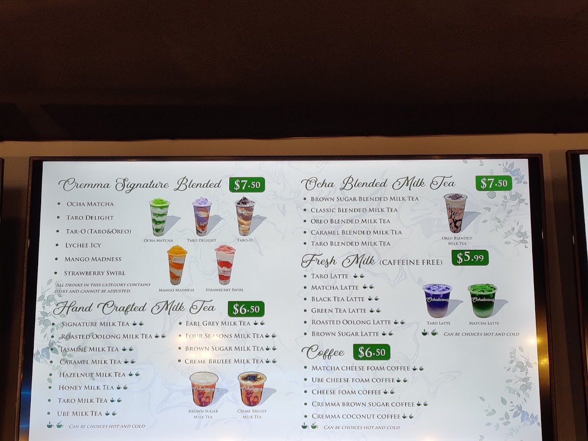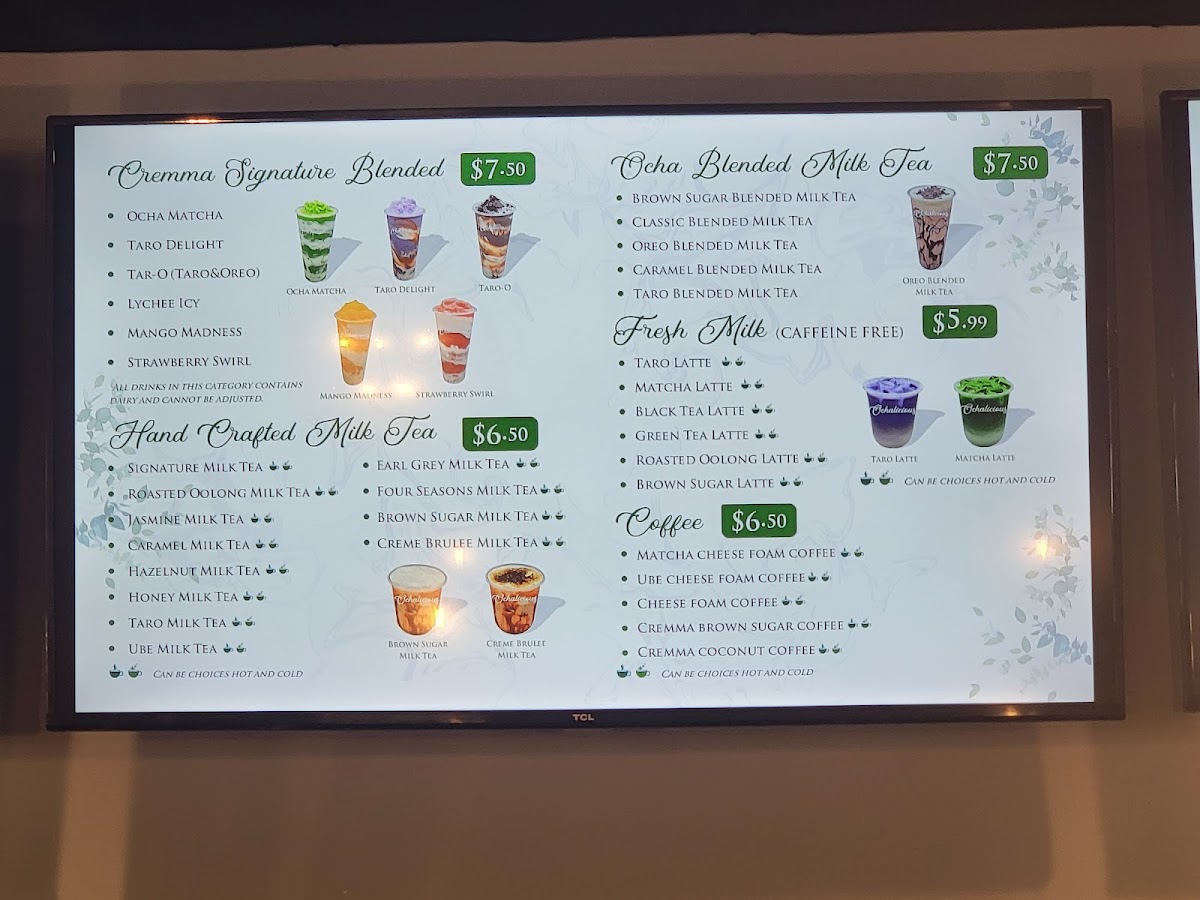 From a reviewer’s perspective, the menu at Ochalicious Bubble Tea And Dessert offers a fun and diverse selection that balances classic comfort with creative twists. The Hand Crafted Milk Tea lineup-like Oreo Milk Tea, Honey Milk Tea, and Earl Grey Milk Tea-is a reliable go-to, while the Fresh Milk Latte options such as Strawberry Matcha Latte and Ube Latte feel trendy and indulgent. The standout snack is definitely the taiyaki, with flavors like Bacon & Cheese Taiyaki, Pepperoni Taiyaki, and Red Bean Taiyaki, especially appealing with the deal of 3 For 10.99. Coffee lovers can explore unique picks like Tiramisu Coffee or Ube Cheese Foam Coffee, while blended drinks like Lychee Icy and Taro Delight add a refreshing variety. Fruity teas such as Mango Green Tea and smoothies like Strawberry Mango Smoothie keep things light, and caffeine-free sparkling drinks like Lychee Sparkling round out the menu nicely. Overall, the wide range of flavors and formats makes it easy to find something satisfying whether you’re craving dessert, a snack, or a creative drink.